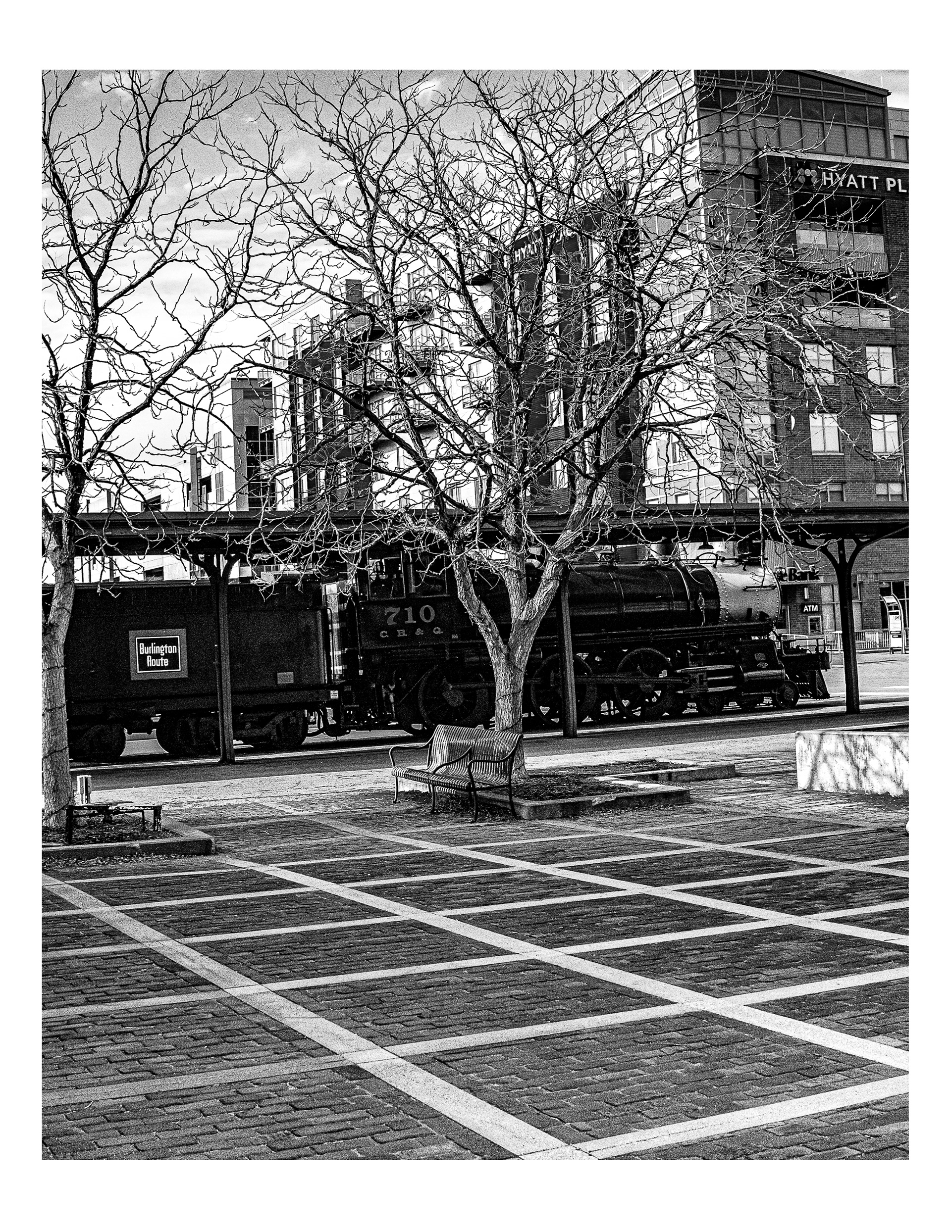 View of Train and Plaza in Haymarket Area of Lincoln NE.